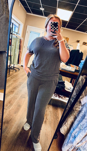 Grey Striped Waffle Top